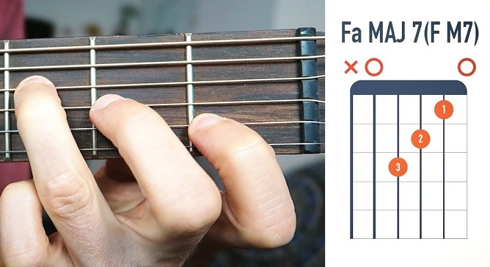Comment jouer un accord de Fa Maj7 (F Maj7) en guitare ?